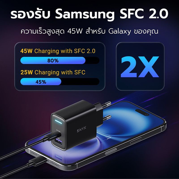 - ENYX หัวชาร์จ PD 45W GaN A4S ที่ชาร์จ USB-C Fast Charger