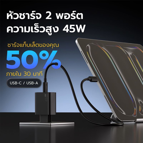 - ชาร์จได้รวดเร็วและมีประสิทธิภาพกว่าหัวชาร์จ 45W แบบทั่วไป